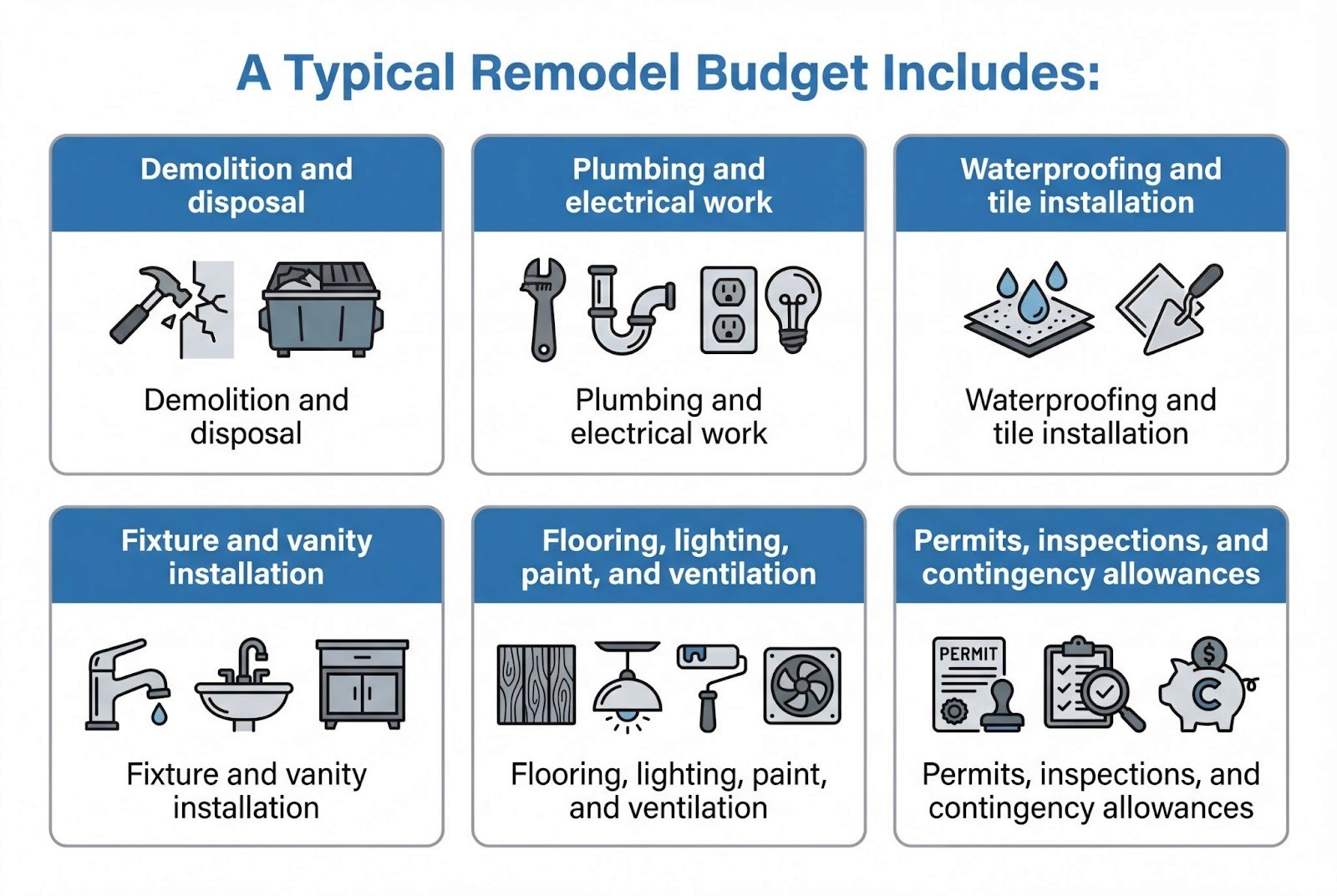For a standard 5x8-foot bathroom, this range covers a full transformation without pushing into luxury territory. It is also where most homeowners find the best balance between cost, durability, and resale value.